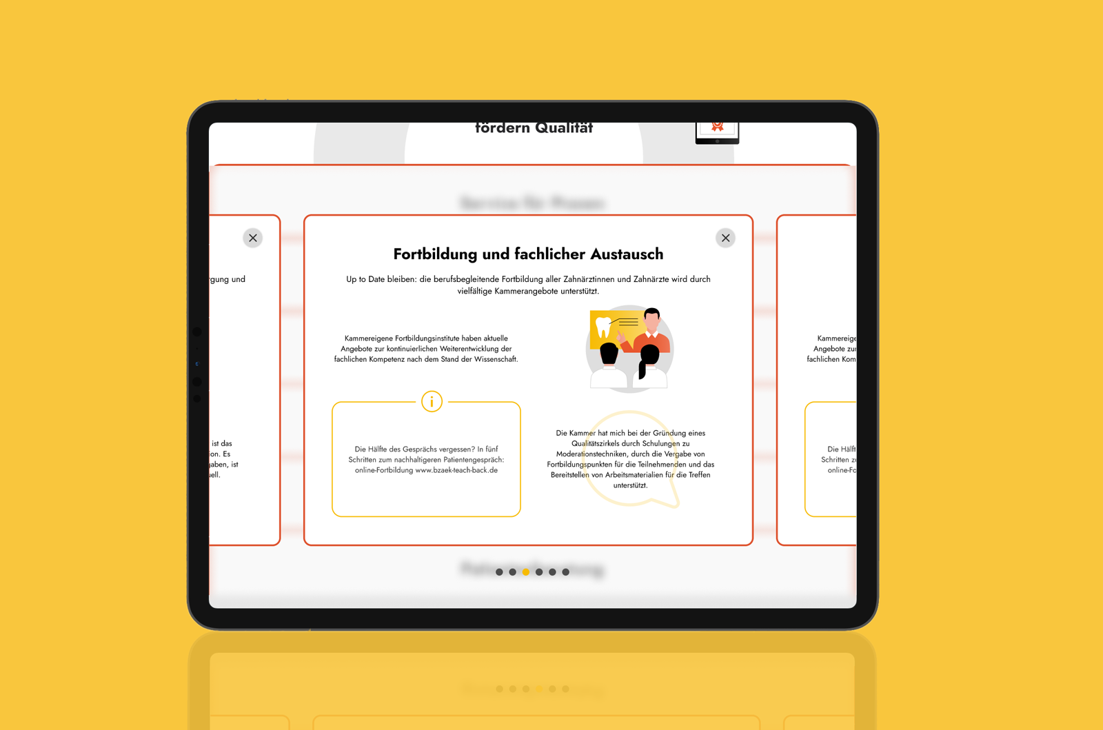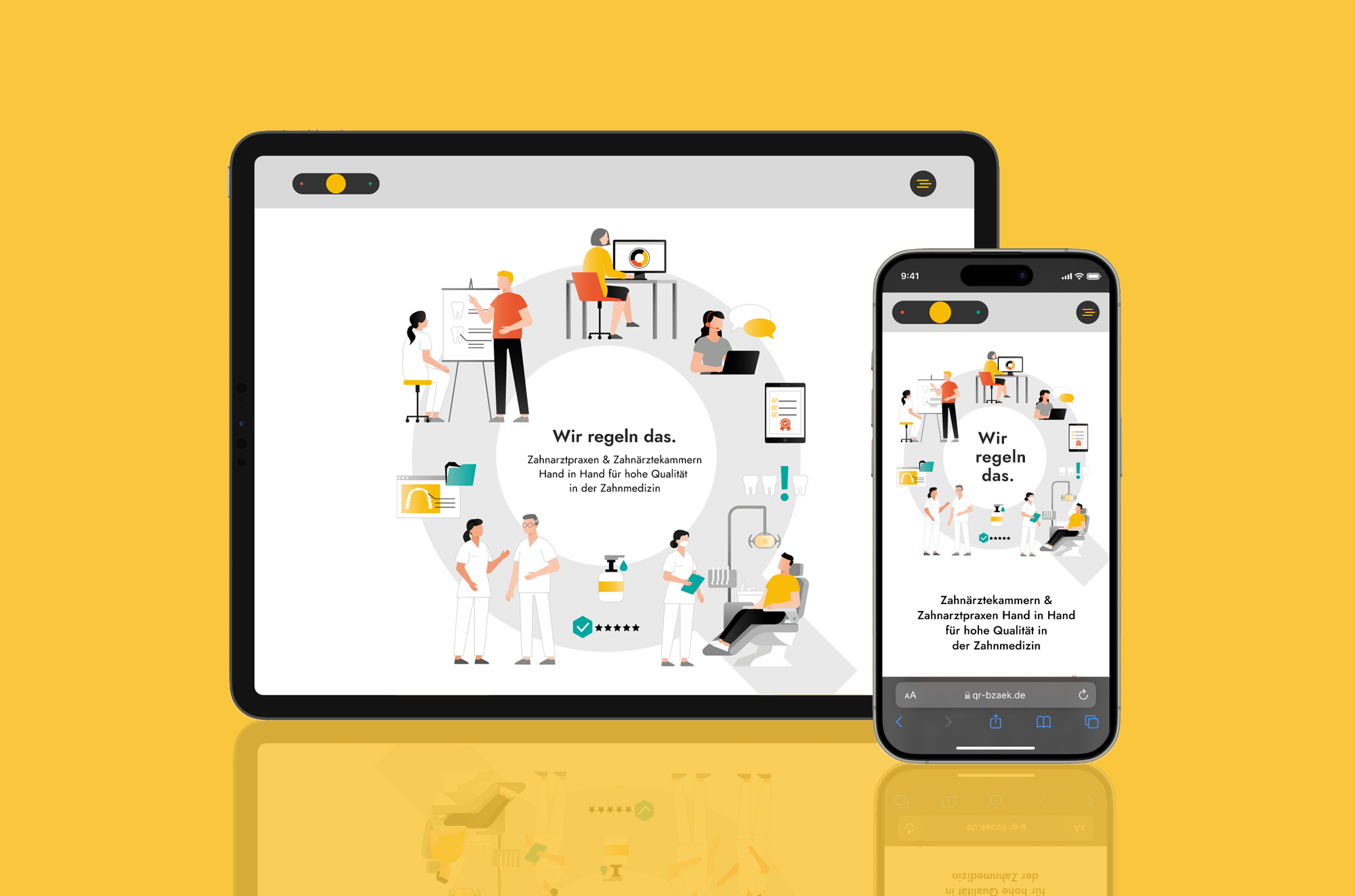 Gemeinsam mit „Fox & Magpie Design Studio“ haben wir den BZÄK-Qualitätsreport als Website erstellt. Das Design der Startseite basiert auf der Form des Buchstabens Q und illustrierten Karten mit Icons für jedes Thema. Q wie Qualität, Qualitätsförderung, Qualitätssicherung, Qualitätsmanagement: der Qualitätsreport der Bundeszahnärztekammer informiert umfassend über die Projekte und Maßnahmen der (Landes-)Zahnärztekammern und der Zahnarztpraxen!